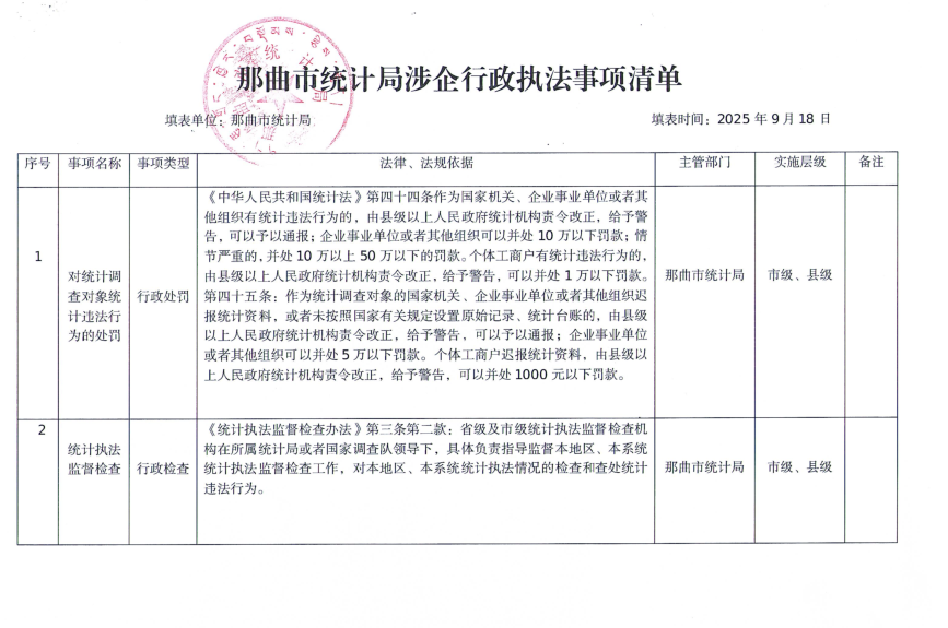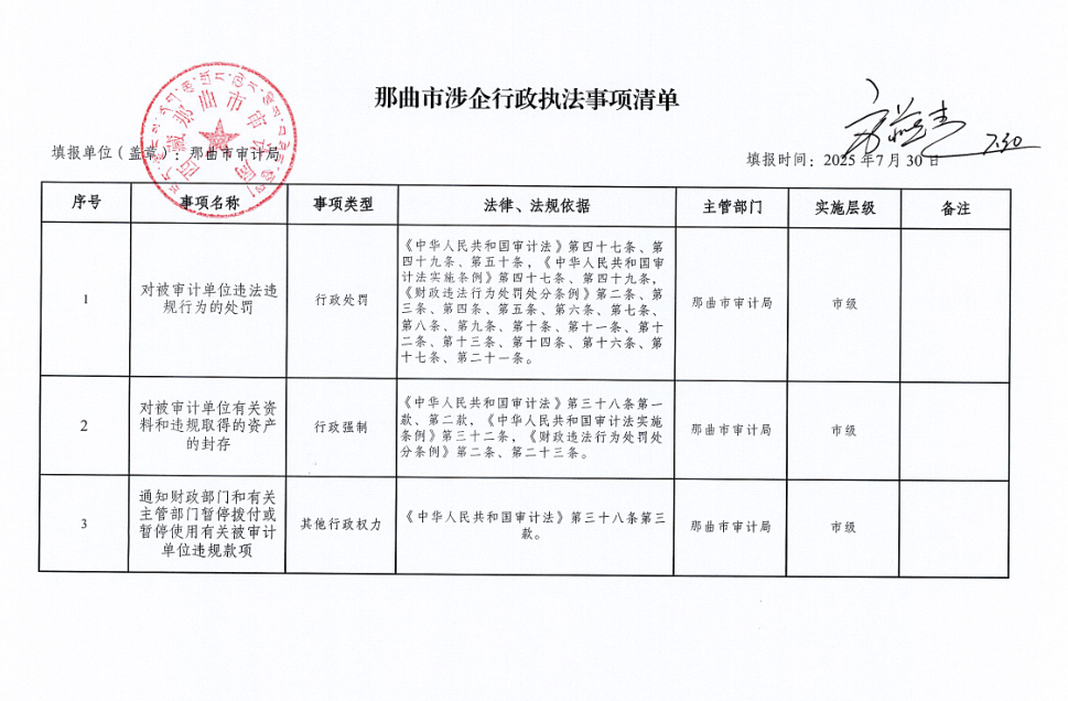 《那曲市审计局涉企行政执法事项清单》
