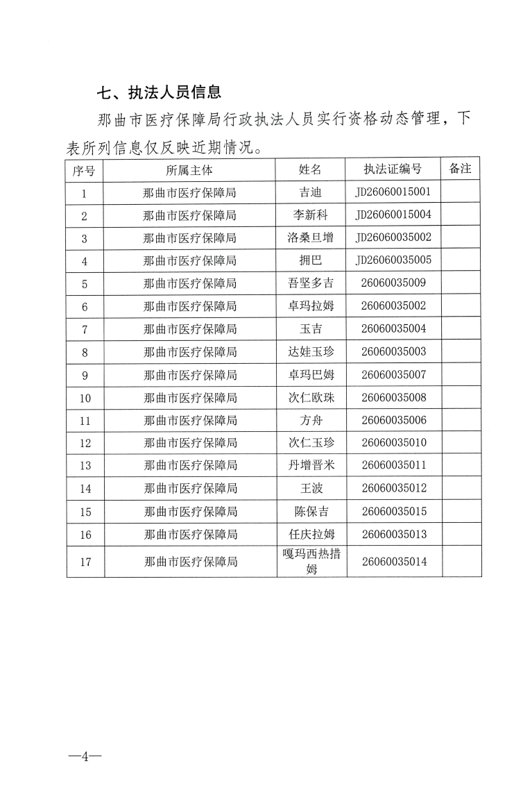 那曲市医疗保障局行政执法信息公示(2025年版)