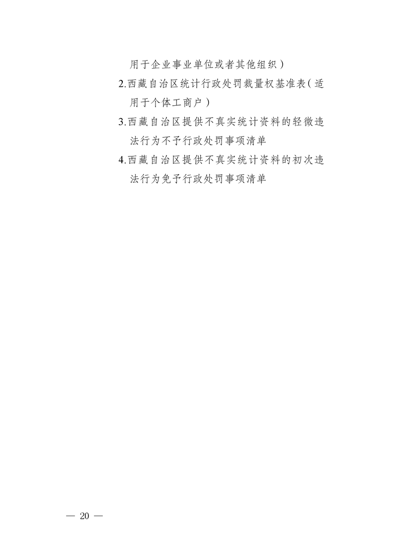 2.主要依据:《中华人民共和国统计法》《中华人民共和国统计法实施条例》《西藏自治区统计管理条例》(其中包含行政检查与处罚的授权规定)、《统计执法证管理办法》(规范执法主体资格)、《统计严重失信企业信用管理办法》(作为实施联合惩戒的依据)等。